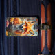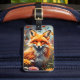 Ein hübscher kleiner Fuchs schaut dich an. Er sitzt zwischen Blumen und spielte mit Schmetterlingen.