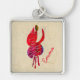 Fuchsia abstrakt akvarellblomma fyrkantig silverfärgad nyckelring
