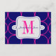 Fuchsia Rosa och Marinblå Modern Bröllopsmottagningskort med Monogram Initial och fet cirkelmönster. Anpassa med din information och färgval. Du kan ändra bakgrundsfärgen på cirklarna i mönstret genom att använda redigeringsmenyn och ändra bakgrundsfärgen. Elke Clarke©