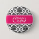 Fuchsia Damask Bride's Crew Button Knapp