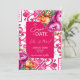 Fuchsia Mediterranean Majolica tiles magenta fuchsia färg tema bröllop spara datum, italiensk stil Capri, Amalfi Kusten, Sicilia temainbjudningar till bröllop med shock rosa av orange magenta och boho greenery