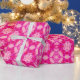 Förpackning papper i ett slips mönster i skuggor av djup fuchsisk rosa, orkidé och pastellrosa, accentuerad med mjukt violett