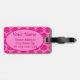 För älskare av rosa! Identifiera ditt bagage, ryggsäck eller datorväska med den här roligten och snyggten bagagetaggen med ett modernt modersmjölkmönster som du kan anpassa med ditt monogram initialer eller namn i rosa oval. Lägg till kontaktinformationen på baksidan. Den här romantiska dammformgivningen är elegant med en contemporary, modern, ny appell från Phyllis Dobbs originalkonstverk Parisian Damask. Färg är ljust och dynamiskt i sofistikerade nyanser av fuchsisk rosa som är lagrade på en ljus rosa dammmönsterbakgrund. Fullständigt anpassade för att anpassa dig med ditt monogram, namn, namn eller annat ord. Ta en titt på alla andra produkter som innehåller denna dammkonstruktion från en mängd olika elektronikprodukter till kontorsmaterial, inbjudningar, kläder, kontorsmateriel, affärskort och många andra roligtar som samordnar produkter. Parisian Damask finns i flera färg-kombinationer till ge och du har ett stort urval färg. Helt anpassade.