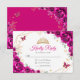 Fuchsia pink gold and white floral Quinceanera RSVP reply card. Features, script font, gold butterflies, watercolor roses and tiara. Perfect for an elegant princess style glam celebration. Personalize with your own details.