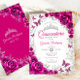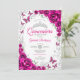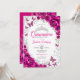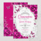 Fuchsia Pink Silver Floral Quinceanera Inbjudningar