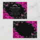 Fuchsia pink black silver Quinceanera reception details enclosure cards. Features, script font, glitter silver butterflies, watercolor roses and tiara. Perfect for an elegant princess style glam celebration. Personalize with your own details.
