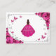 Fuchsia pink silver and white Quinceanera reception details enclosure cards. Features brunette girl in ball gown dress, script font, silver butterflies, hot pink roses and tiara. Perfect for an elegant princess style glam celebration. Personalize with your own details.