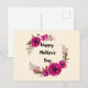 Ett vykort designat med söt fuchsia poppies och dekorativa sprickor och löv i en cirkulär blommigt andedräkt. Lycklig Mors dag är skrivet i ett sött trendig. Söt och elegant.