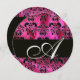 FUCHSIA ROSA BLACK DAMASK TRASA MONOGRAM Circle Inbjudningar