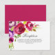 Vackra ljusröda akvarellblommor pryder botten på detta romantiska bröllopskort. Den vackra typografin hålls samman av en fantastisk livfull fuchsia och lila blomsterbukett. Ett underbart botaniskt kort med rosor för ett sommarbröllop. Lägg till detaljer om mottagningen för era gäster nedanför det eleganta blomsterarrangemanget.