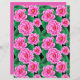 Pappra i mönster av kamellablommor i skuggor av djup till pastelliserad rosa, mot bakgrund av mörk jade grönt löv