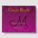 Fuchsia Rosa Guld Svart Elegant Bröllopsmonogram Gästböcker