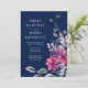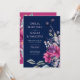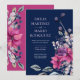 Vackra fuchsia rosa och marinblå blommiga bröllopsinbjudningar.