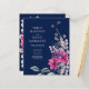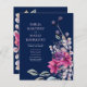 Vackra bröllopsinbjudningar i Fuchsia Rosa och Navy Blue blommigt.