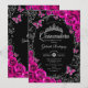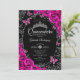 Fuchsia Rosa Silver Black Quinceanera Inbjudningar
