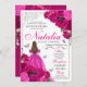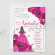 Fuchsia Rosa & Silver Blommigt Quinceanera Birthday-inbjudan