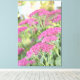 Modernt blomstertryck med fuchsiarosa sedumblommor på sträckt canvas. Varmt tryck i trädgårdsfärger.
