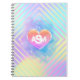 Den här ljusa och färgglada anteckningsboken har ett regnbågsscheckigt mönster med ett magiskt regnbågskromatiskt hjärta och din fullständiga monogram högst upp! Dess spiralbundna sidor med kollegie linjerings är perfekta för anteckningar, skisser och för att hålla ordning. För att anpassa denna design, ange din efternamnsinitial som den mellersta bokstaven och redigera de andra två bokstäverna för din för- och mellannamnsinitial. Klicka på "Personalisera" för att se hur det ser ut, och för att göra fler redigeringar, klicka på "Designverktyg" för fler alternativ, gör också en fin present.