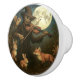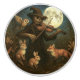 En läskig fågelskrämma leker medan vissa djur tittar på, små varelser och uggla är en del av detta märkliga Halloween bild.