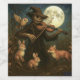 En läskig fågelskrämma leker medan vissa djur tittar på, små varelser och uggla är en del av detta märkliga Halloween bild.