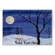 En liten vattenfärg och bläck målning av en räv på en nattjakt i snö under fullt måne. Målad för Art-O-Mat.