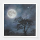 Träd silhuett mot en vacker natt himlar med fullt. Bakgrunden i den här bilden är AI, men måne, mitten, träd, några stjärnor och träd har lagts till som skapar en mer intressant bild av det fiktiva landskapet med underbarare djup.