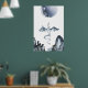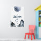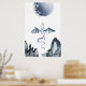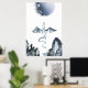 Full Moon och Dragon i Shades of Dusty Blue on White Background Poster -
