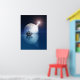 En illustration av en fullt night måne över havet med lysande skjutstjärna.