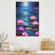Full Moon och vacker Rosa Lotus Flowers Poster