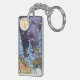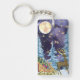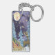 Magical watercolor illustration of a reindeer with sleigh in a forest with Christmas trees, covered with snow and lit by the light of the full moon in the starry sky.