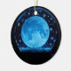 Full blue moon in a snow globe with snowflakes. A mystical magical Christmas or Yule ornament.