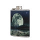 Ett härligt avbildar tittar ut över en sjö med berg på den annan kusten. Bak bergen i natthimmlen är två måne, en som mycket är nära, och en som är långväga och extra stjärnor.