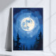 Fullmåne | Natthimmel Skog Akvarellmålning Poster