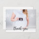 Detta fullständiga tack-kort är perfekt för dina tack-anteckningar på baby shower eller bröllops shower. Det har en vit överläggning och "tack" i en svängig skrift på framsidan, och ditt favoritfoto. Baksidan har ditt anpassade meddelande eller kan lämnas tomt för att skriva dina känslor för hand. Använd mallformuläret för att lägga till din egen text. Funktionen för anpassning kan användas för att ändra teckensnittet och flytta texten.