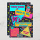 Ta ett steg tillbaka i tiden med denna djärva och elektrifierande Retro 80-/90-talsfestinbjudan, designad för alla som är redo att återuppleva de mest fantastiska decennierna någonsin! Med neonfärger, kassettband, Gameboys, boomboxar och funkiga geometriska former skriker denna inbjudan gammaldags cool. Oavsett om du anordnar en tillbakablickande födelsedagsfest, en nostalgisk återförening eller ett decennium-tematiserat evenemang är denna design din perfekta nostalgiska upplevelse.
