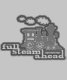 Förbered dig med den här monotone grafiklammen tåg logotyp överst. Läser: Fullt går framåt. Designad enbart av Sarah Trett.