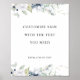 Behöver vi en viss formulering i ett tecken som inte finns i vår samling? Med det här tecknet kan du lägga till vilket meddelande som helst efter dina behov. Du kan t.o.m. markera "anpassa ytterligare" och markera ett annat teckensnitt, stil, position, färg och storlek. Klicka på texten och välj från menyn till högerna. Klicka på "klart" översta hörnet i grund gång avslutat. storlek på 8 x 10 tum är ett enkelt och enkelt exempel på tecken som finns i olika storlekar. Utformning med vacker vattenfärgshöjning och blommigt som ger en vacker blandning av vita, blå och grönt nyanser. En del av vår "Elegant Bliss"-samling med en mängd olika bröllop och tillgängliga produkter för händelsesamordning, inklusive hela uppsättning händelsemeddelanden.