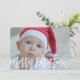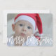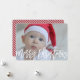god jul-skript på ett fullt-fotokort med rött och vitt rand på baksidan.