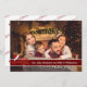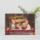 En modern fotojulkortsdesign med din familj som fyller kortet ansikte. Roligt God jul bar en julhatt och en hängande candy cane. Mörkens röda textband för namn eller annat ord.