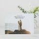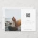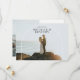 Den här eleganten sparar datumkortet med ett fullt-sidfoto med en modern och trendframåtriktad båge. Par första namn visas i ett sofistikerat serif-teckensnitt under bågen och datum och plats för bröllop kan läggas till antingen grund på datumkortet eller på baksidan. På baksidan finns ett utrymme för ytterligare ett foto tillsammans med en QR-kod för att webbplatsen för bröllop.