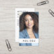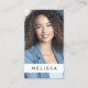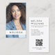 Vit eller valfri färg, lodrät affärskort med dig namn och foto på framsidan och namn, QR-kod, namn, rubrik och kontaktinformation på baksidan.