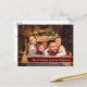 En modern fotojulkortsdesign med din familj som fyller kortet ansikte. Metallic guld Julgran accent med mörk röd textband för ord. Du kan anpassa hälsning, returadressen och namn i manuset nära grund med plats för att lägga till en personlig anteckning.