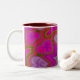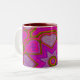 Det rosenhukade mugg har en glad mönster av hjärtan och stjärnor. Perfekt för Alla hjärtans dag eller tillfälle. En del av "Hearts Fullt of Kärlek"-samlingen.
