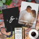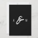 Med det här svarta & vita Spara-the-Date-kortet kan du spela upp din berättelse om kärlek på ett fantastiskt enkelt men helt unikt sätt. Det här moderna mästerverket har ett anpassade på fullt av dig och din partner som bakgrund, vilket gör att dina personligheter kan skina igenom i varje pixel. Längst grund på sidan tillför en elegant målad linje ram en aning elegans, som sätter upp arbetsytan i kärlek. Under denna ram är namn i centrum, skrivet i en elegant blocktext som utesluter modern sofistikering. Att separera namn är ett helsidigt målat tecken för att lägga till ett streck med alternativ fläkt till designen. Ord "spara datumet" och datumet i bröllop är tydligt inskrivet i liten, elegant text alldeles grund på sidan, så att dina gäster vet exakt när de ska märka sina kalendrar för din speciella dag. Om vi går tillbaka till kortets baksida sätter en fetstilt svart bakgrund in scenen för initialer, gång som återigen är ansluten av samma glassmålade ampersand som rör kortets framsida. Det är en subtil och ändå slående nod på enigheten och styrkan i ert partnerskap, som på ett vackert sätt är inkapslat i denna minimalistiska utformning. Med sitt rena linjer, moderna estetik och en gnutta glasinspirerad detalj är detta svarta & vita Spara-the-Date-kort en perfekt för par att söka ett alternativ till traditionella bröllop Spara-the-Date-kort. Låt ert kärlek gå i centrum med detta enkla men oförglömliga tillkännagivande, designat för att göra ett påstående med några ord.