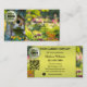 Affärskort med en blomstrande trädgård med ett sött fågelhus och fågel. En logotyp- och QR-kodmall kan enkelt anpassas. Du kan antingen ersätta medieikonen i social med ikonen för de media som du använder mest använda, eller kopiera och klistra in och ersätta om du behöver fler ikoner (i den avancerade redigeraren). Snygg för ett företag som erbjuder trädgårdsdesign och underhåll.