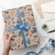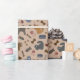 Den här viskdesignen har tecknad katter på olika ställen, omgivna av tass avtryck, garn bollar, fiskben, katt leksak, matskål och ben på en ljusbrun bakgrund. Idealisk för barn, detta papper ger en roligt, matematisk charm till alla gåvor.