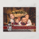 En modern fotojulkortsdesign med din familj som fyller kortet ansikte. Roligt snögubbe dekorera med rött textband för mörk för ord. Du kan anpassa hälsning, returadressen och namn i manuset nära grund med plats för att lägga till en personlig anteckning.