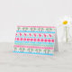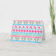 Tropisk fulstyg jultröja design med rosa flamingos, palmer och blå strandvågor.