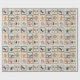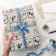 A playful grid of nine festive illustrations, each with vibrant Christmas ornaments or stylized tree shapes in triangular arrangements. Framed in bold holiday hues, this cheerful design brings a pop-art twist to seasonal decor and gifting.