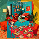 Fun Retro Christmas Holiday Dinner Party 1950s With snacks and drinks lounge room red orange teal, Christmas Holiday Party Invitation. Please Note: All flat images!